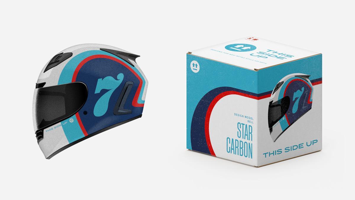 Дизайн бренда THIS SIDE UP воссоздает лучший гоночный стиль прошлых лет, подчеркивая аутентичность, стиль, «харизму» продукции. У коробок нет четкой цветовой гаммы, так как он разрабатывается под каждую модель, с учетом дизайна самого шлема и его особенностей. Это дает пространство для фантазии, так как нет ограничительных привязок к конкретному цвету и ассоциациям, связанным с ним.